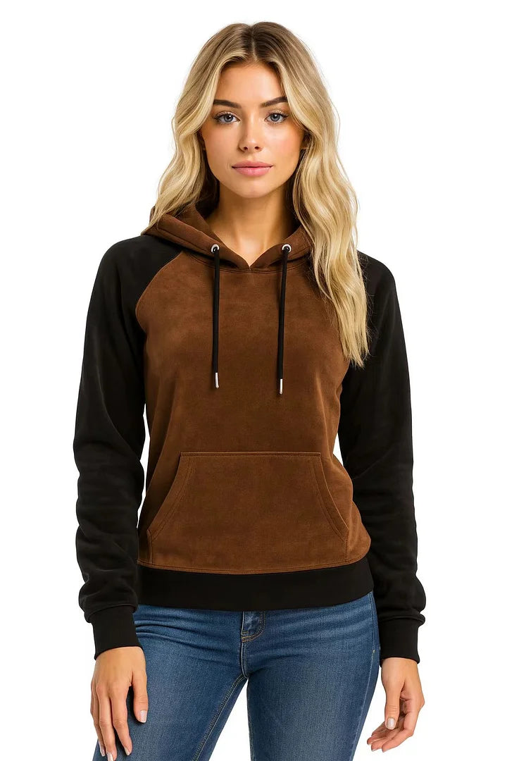 Fashion Navy and Brown Hooded Sweatshirt with Embroidered Logo